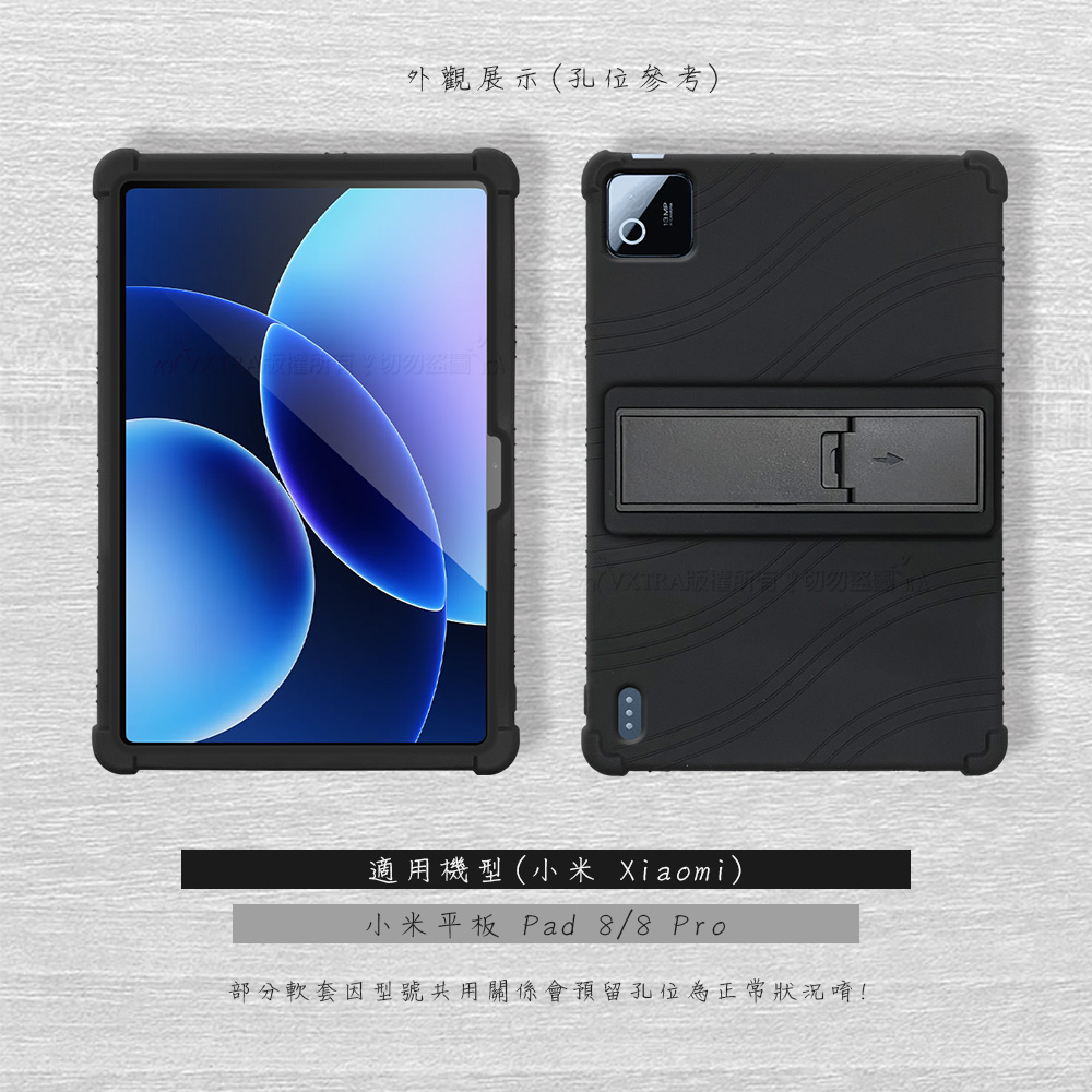 VXTRA 小米平板Pad 8/8 Pro 全包覆矽膠防摔支架軟套 保護套(黑)