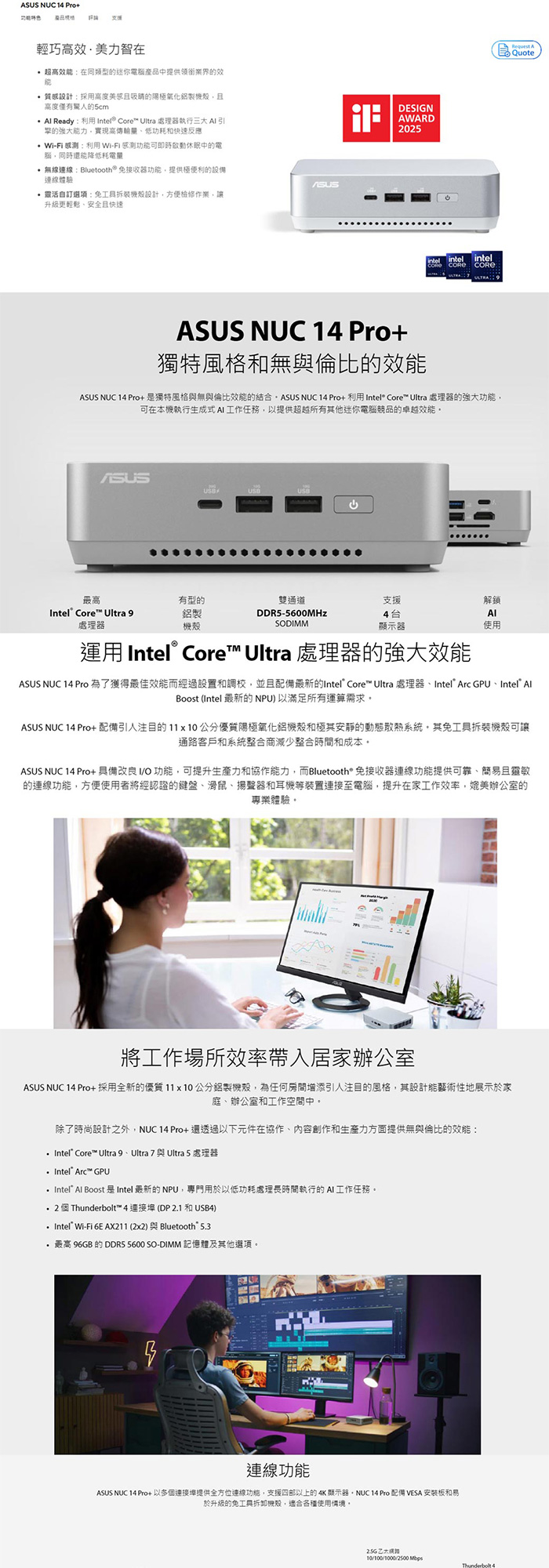 《ASUS 華碩》 RNUC14RVSU7068A9 Ultra 7 155H/16G+16G/512G 桌上電腦/特仕版