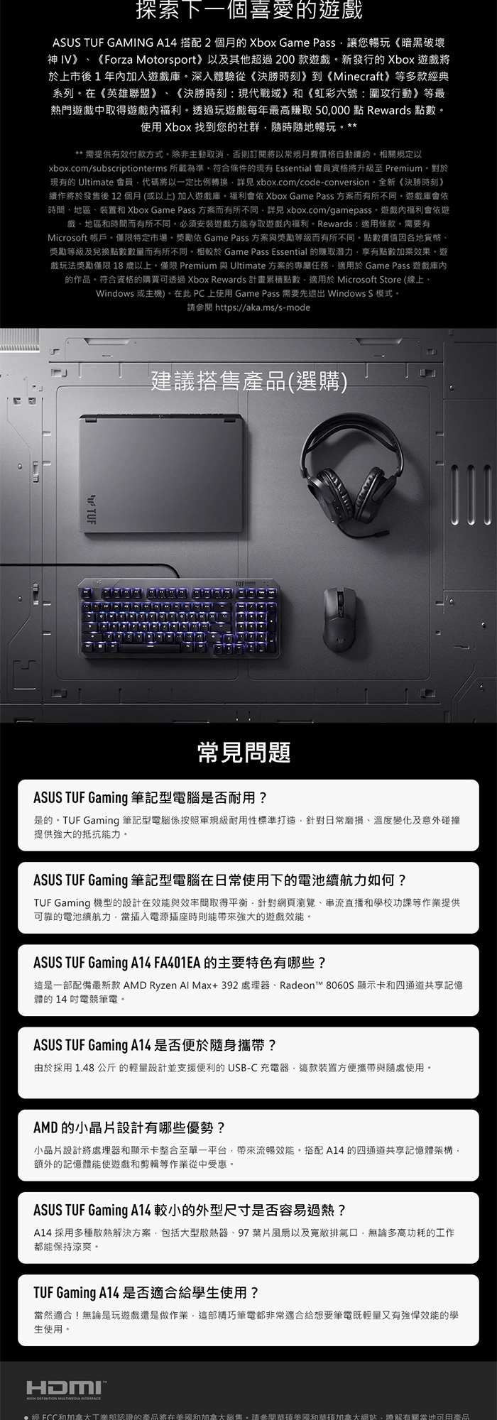 《ASUS 華碩》 FA401EA-0041A392H(14吋2.5K/Ryzen AI MAX+ 392/32G/1TB SSD/Win11/二年保)