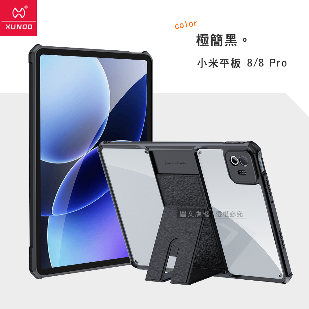XUNDD訊迪 軍事氣囊 小米平板Pad 8/8 Pro 隱形支架殼 平板防摔保護套(極簡黑)