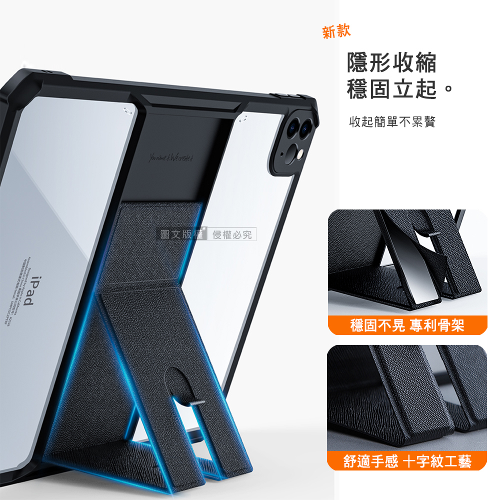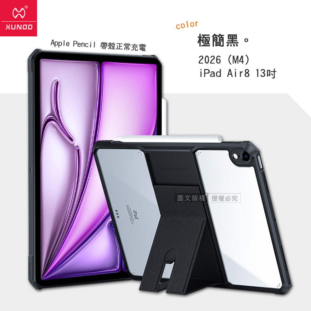 XUNDD 軍事氣囊 2026 iPad Air8 13吋 M4 隱形支架殼 平板防摔保護套(極簡黑)