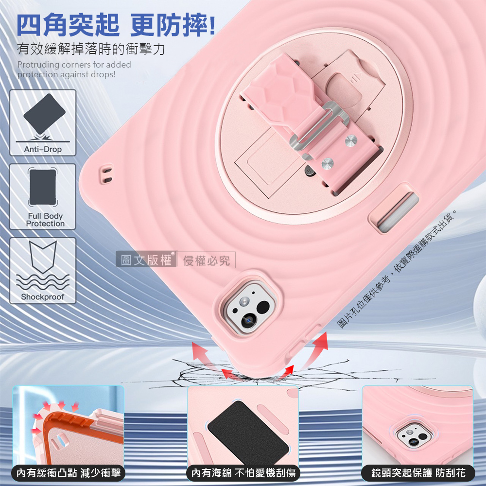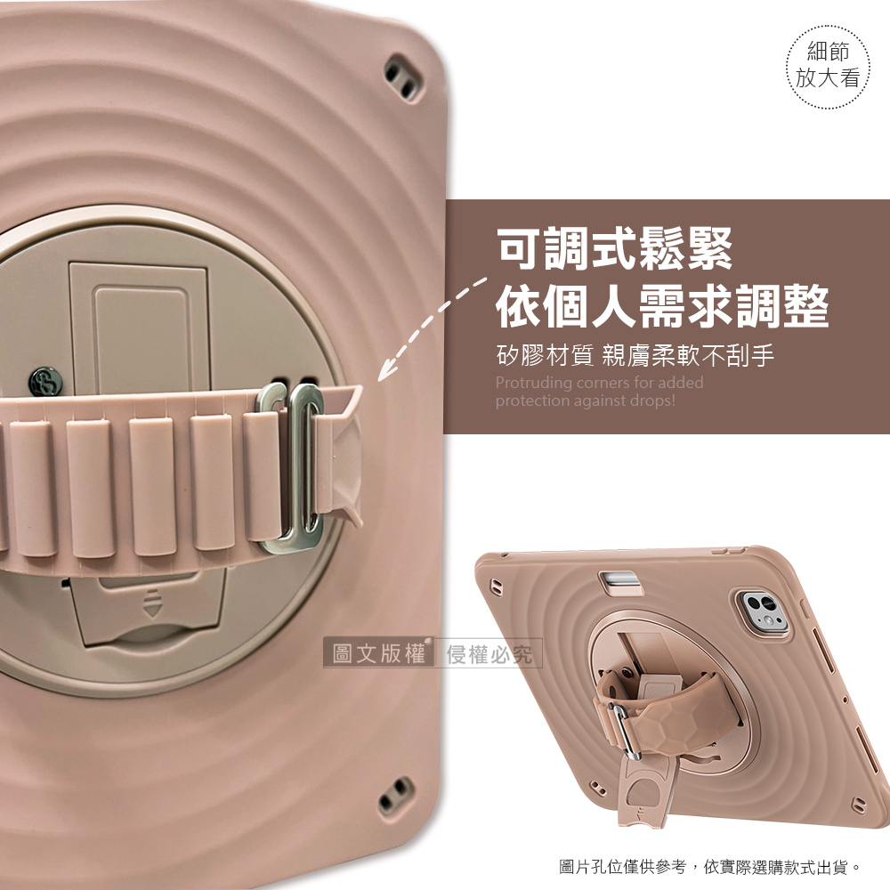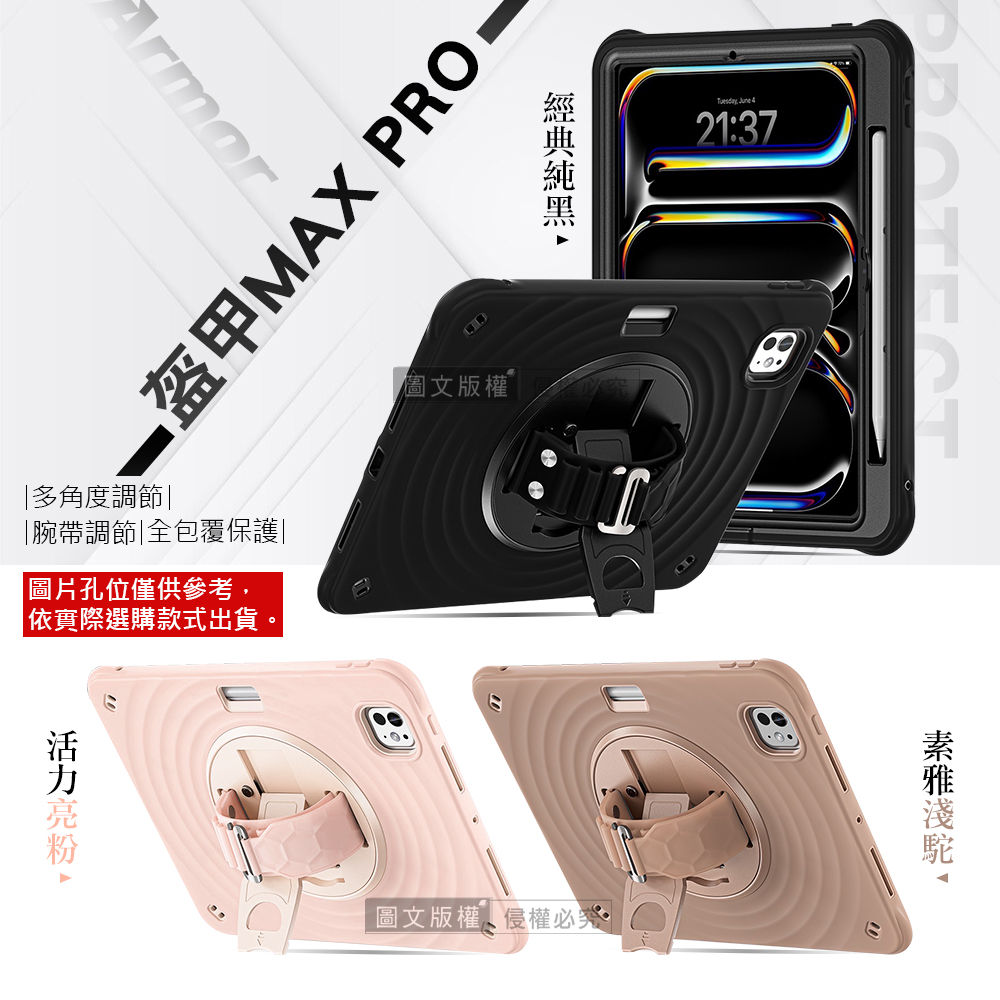 盔甲MAX PRO 2026 iPad Air8 11吋 M4 全包覆矽膠PC硬蓋防摔保護殼套 秒收旋轉支架 附側背帶(素雅淺駝)