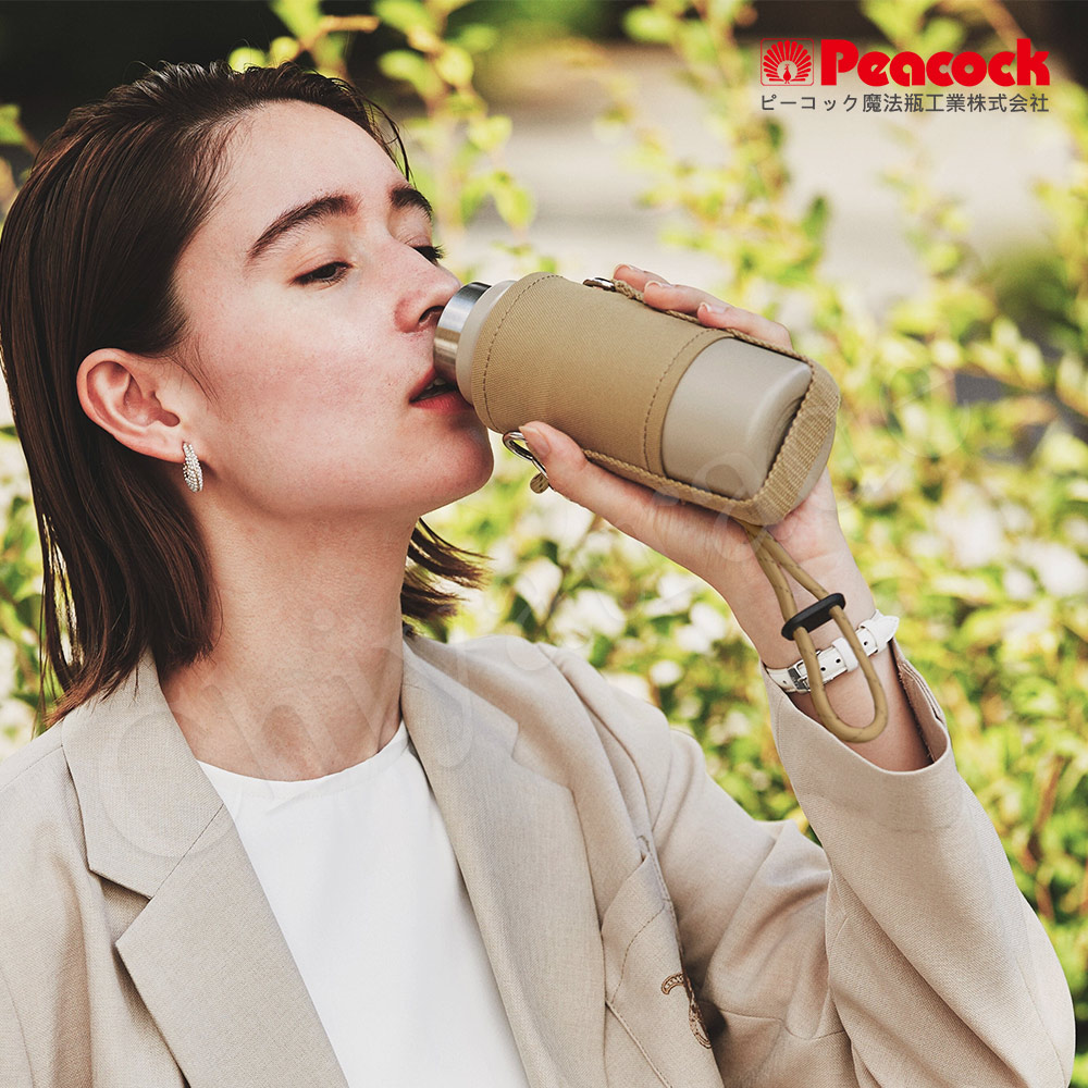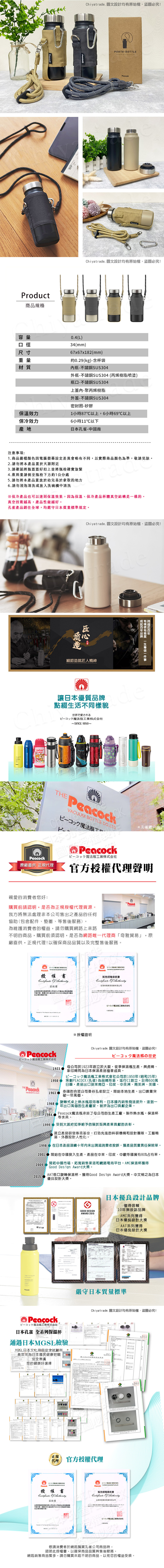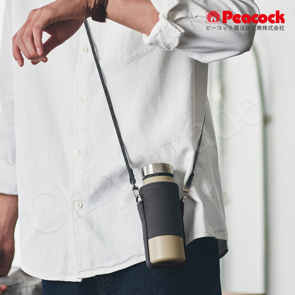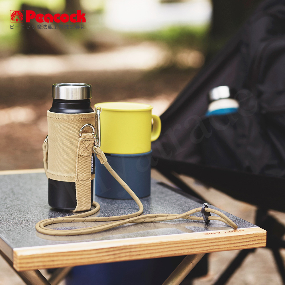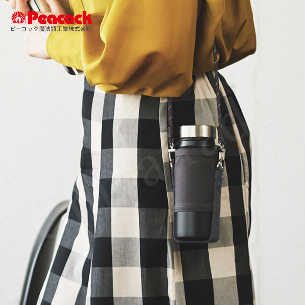 【中華VIP】【日本孔雀Peacock】露營戶外登山 不鏽鋼保冷保溫杯400ML(附可調杯袋+登山扣環)