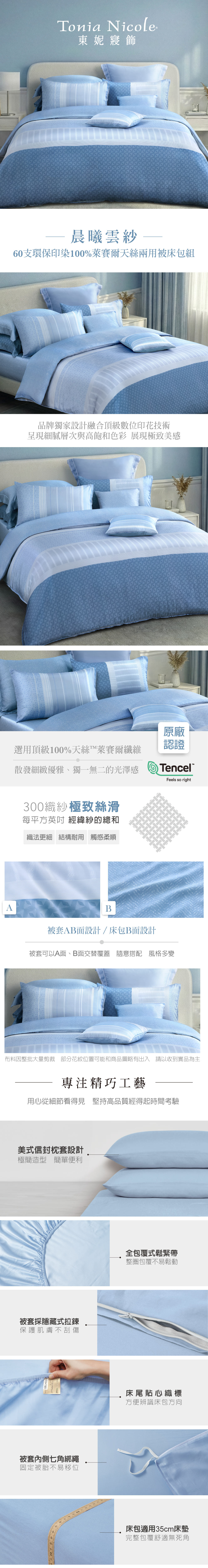 【Tonia Nicole 東妮寢飾】晨曦雲紗60支環保印染100%萊賽爾天絲兩用被床包組(雙人)