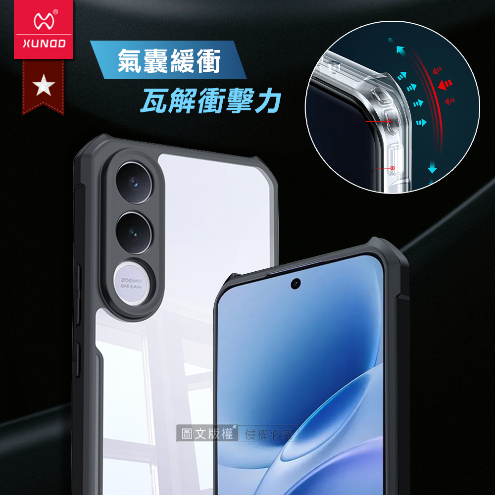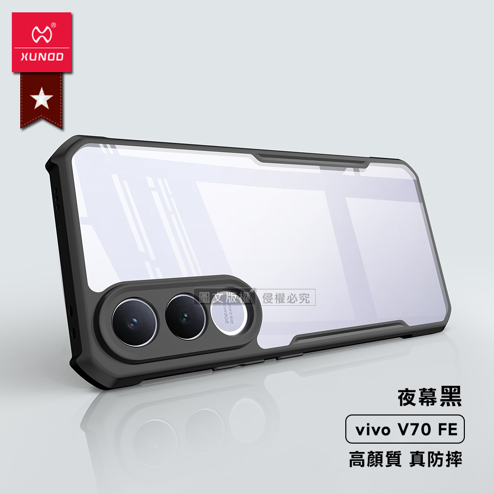 XUNDD訊迪 軍事防摔 vivo V70 FE 鏡頭全包覆 清透保護殼 手機殼(夜幕黑)