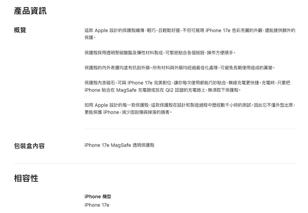Apple iPhone 17e MagSafe 透明保護殼