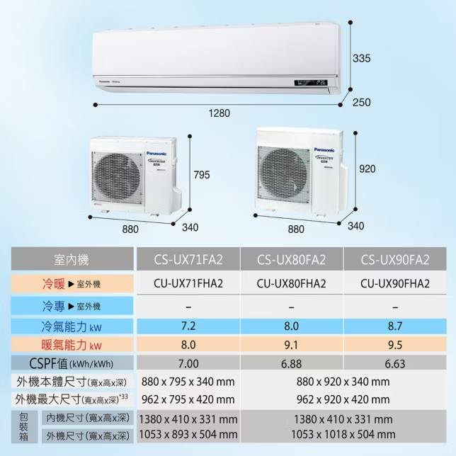 Panasonic CS-UX71FA2/CU-UX71FHA2 10-11坪 頂級旗艦系列冷暖空調