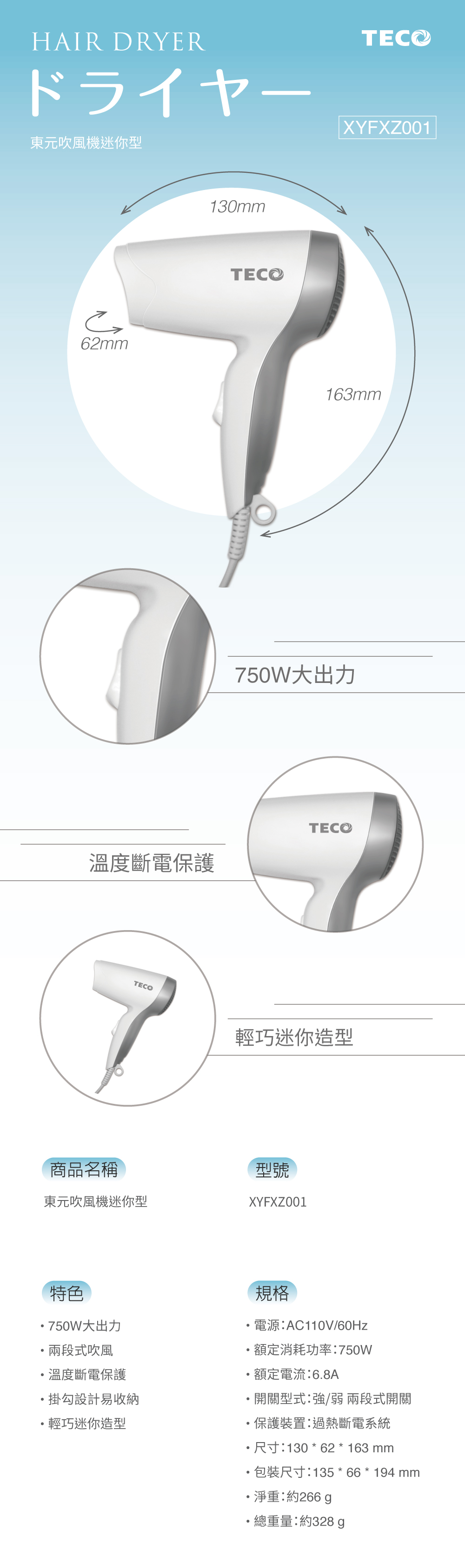 TECO東元 迷你型吹風機 白 XYFXZ001