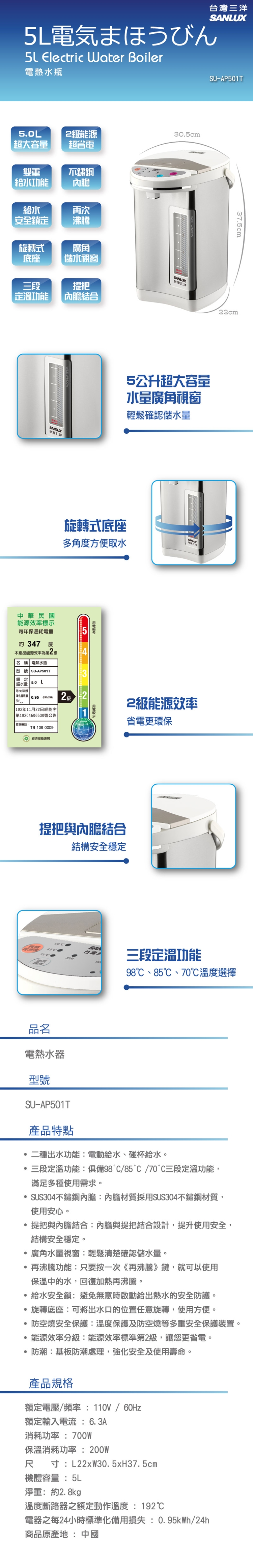 SANLUX 5L三段定溫熱水瓶(2級能效) SU-AP501T