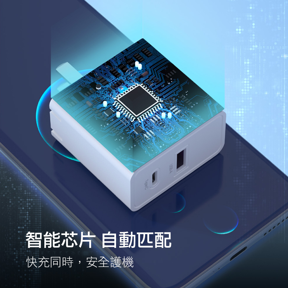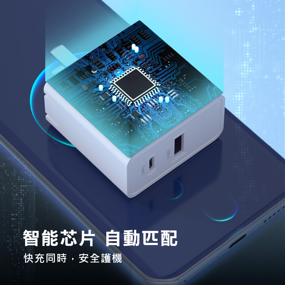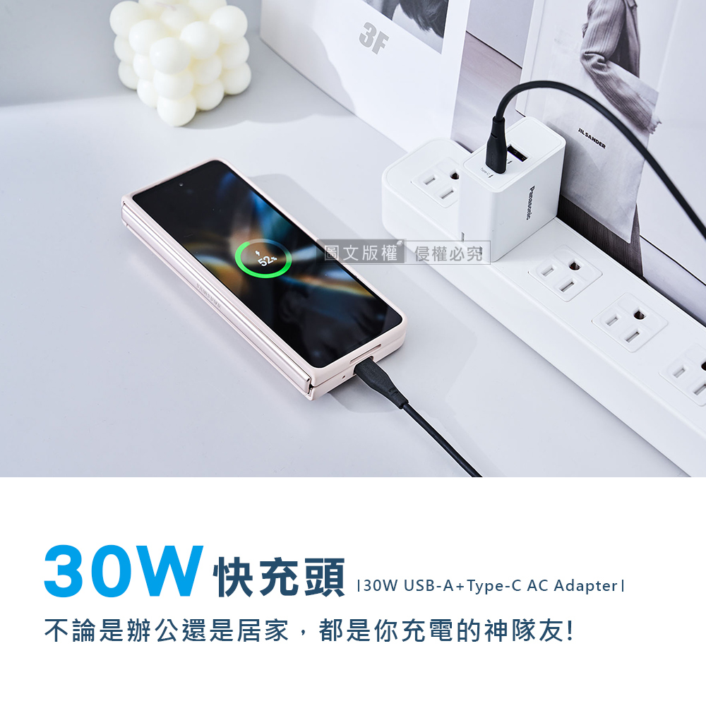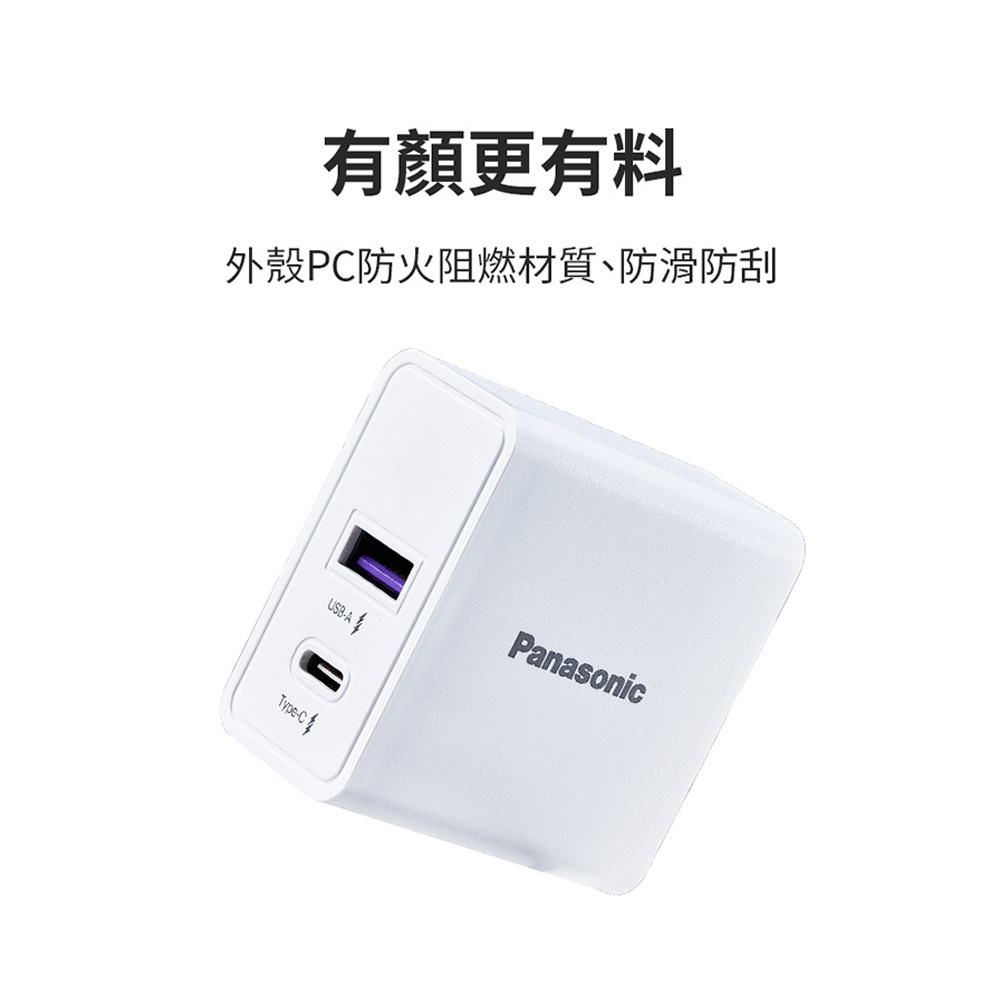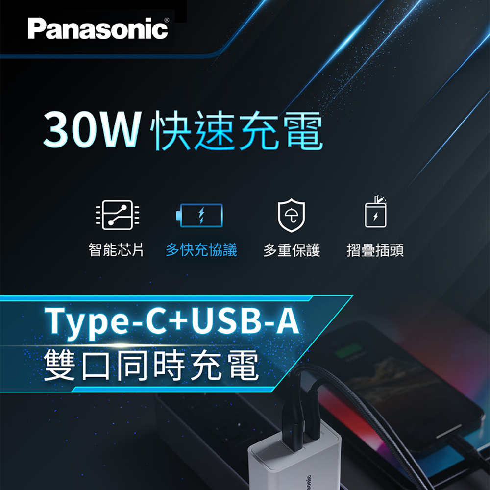 Panasonic原廠 30W快充 USB-A+TYPE-C 雙輸出充電器 摺疊插頭 電源供應器(白)