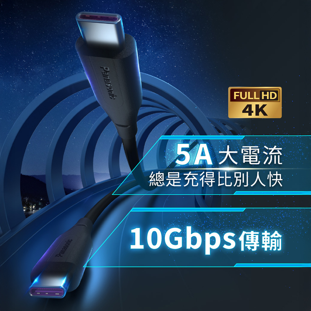Panasonic 5A MAX充電傳輸線 USB3.2 Type-C to Type-C 4K高畫質影像傳輸線(1M)