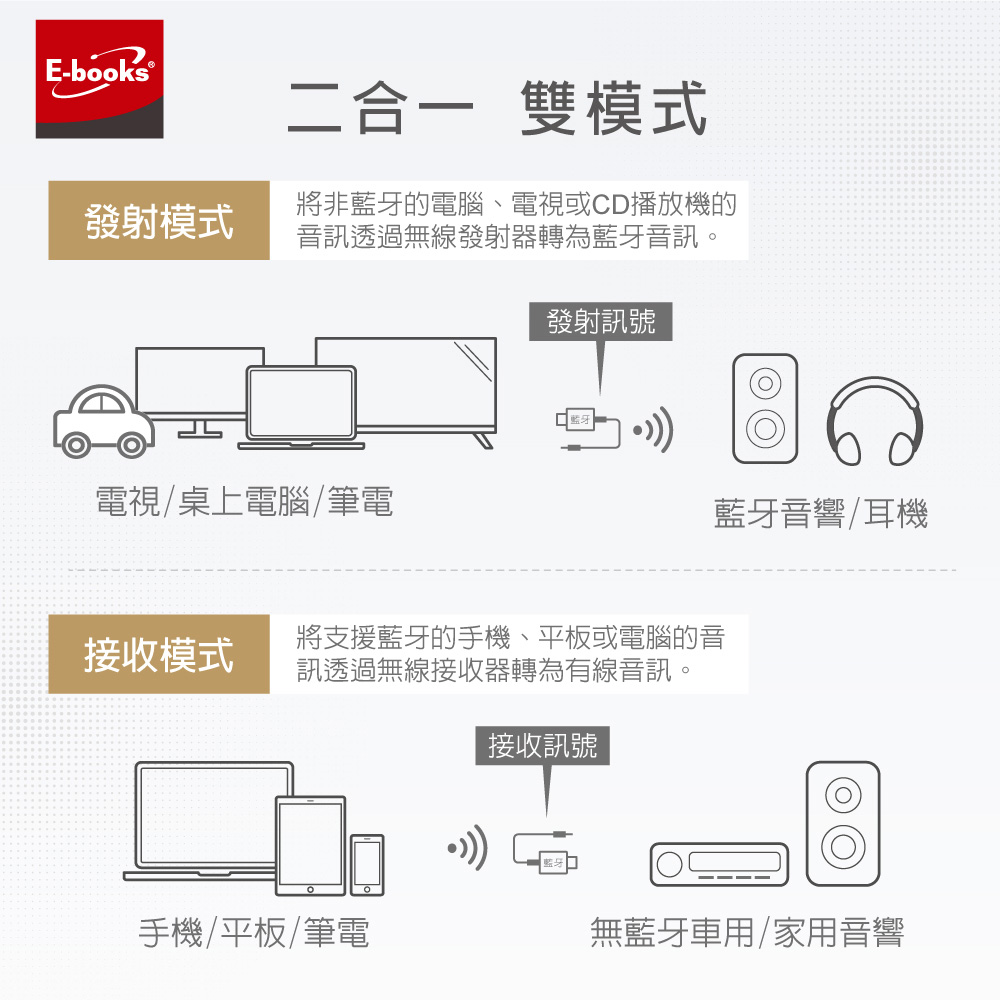 E-books Y4 支援通話二合一免驅動藍牙5.4接收發射器