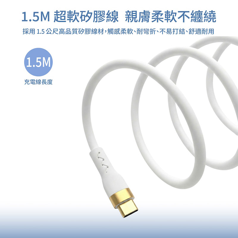 ◎ 1.5M超軟矽膠線,親膚柔軟不纏繞
