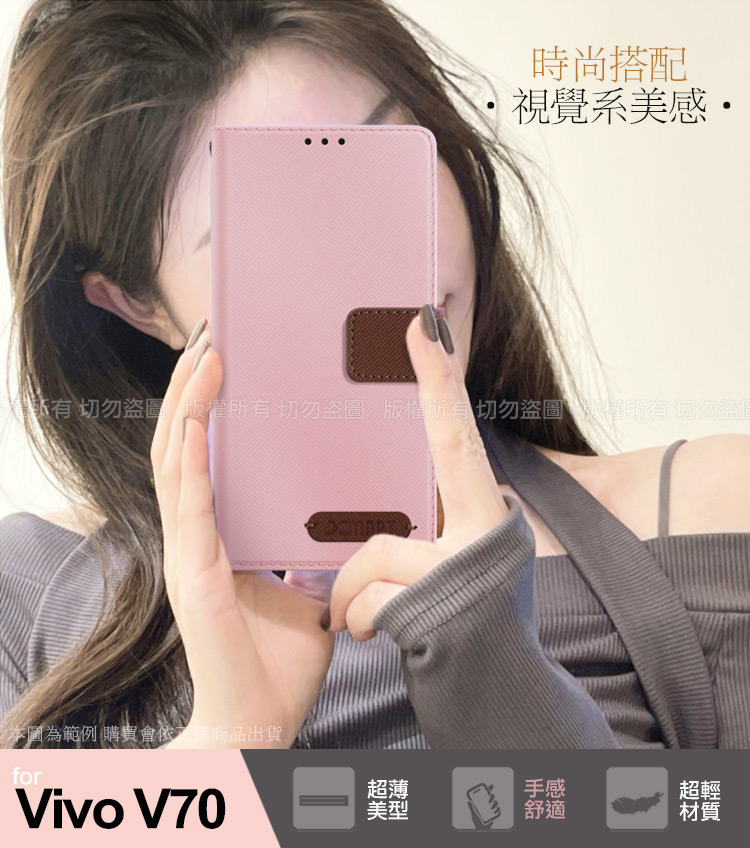 Xmart Vivo V70 度假浪漫風斜紋側掀支架皮套-藍色