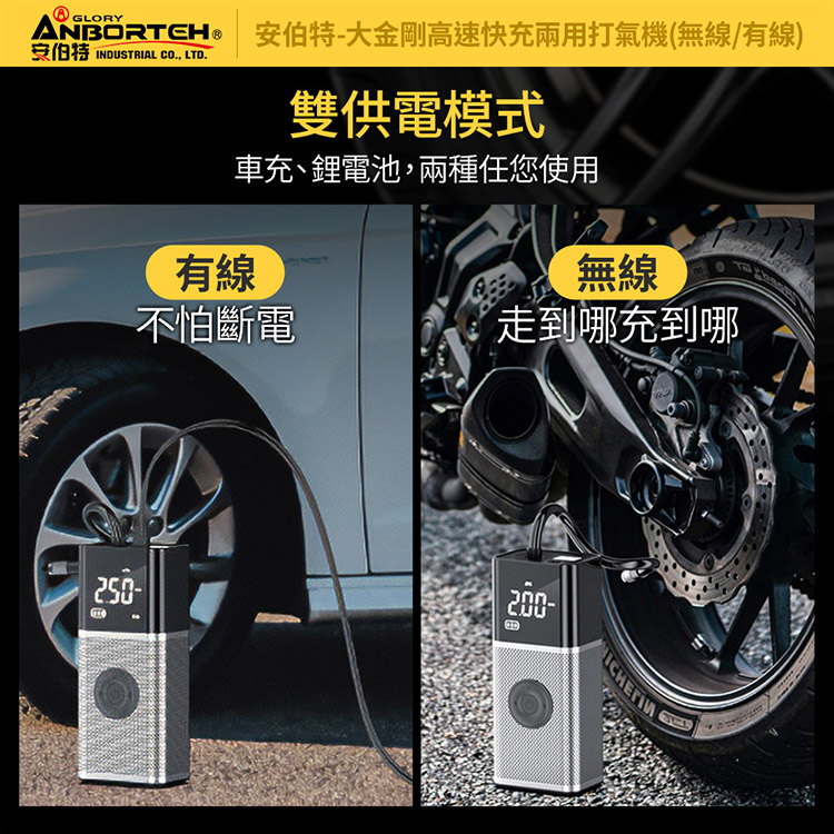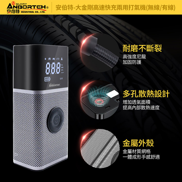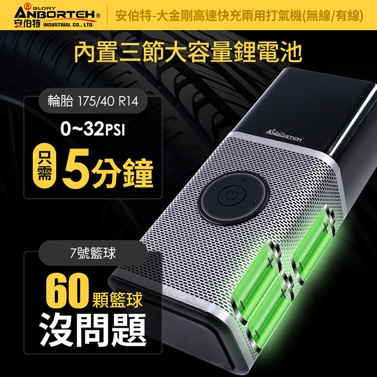 【安伯特】大金剛快充兩用雙供電打氣機 (國家認證 一年保固) 汽車打氣機 輪胎打氣機 無線打氣機