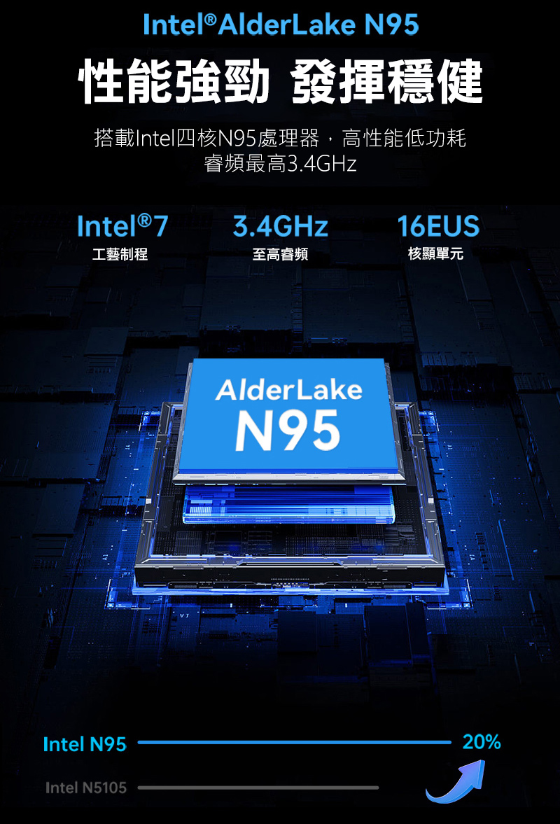 .Intel AlderLake 處理器 N95 4核4執行緒 3.4GHz, 15W TDP, 6MB 快取記憶體
