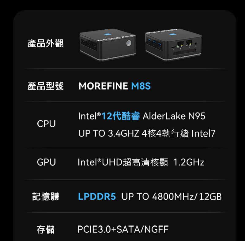 MOREFINE M8S 迷你電腦(Intel N95 3.4GHz) - 12G/512G (Win 11)