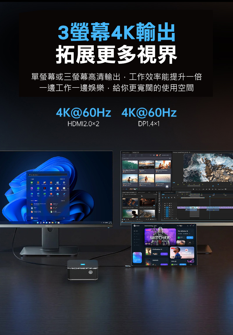 .可三螢幕輸出,工作效率提升,一邊工作一邊娛樂