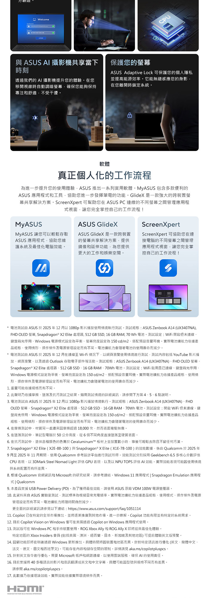 《ASUS 華碩》 UX3407NA-0122G88100(14吋3K/X2 Elite X2E88100/16G/2TB SSD/Win11/特仕版)