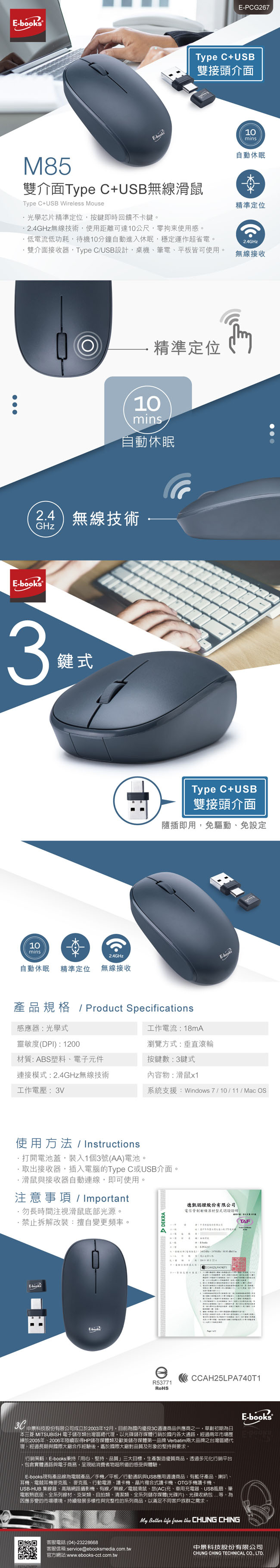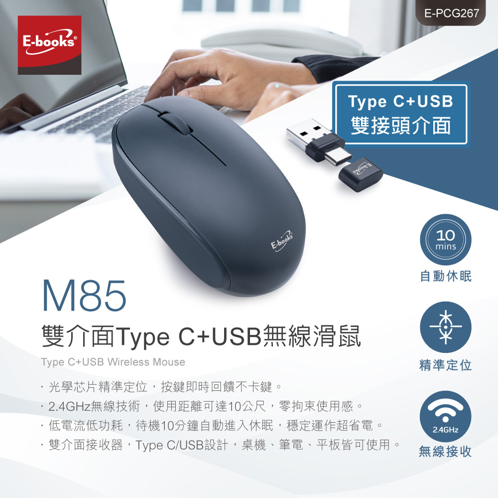E-books M85 雙介面Type C+USB無線滑鼠