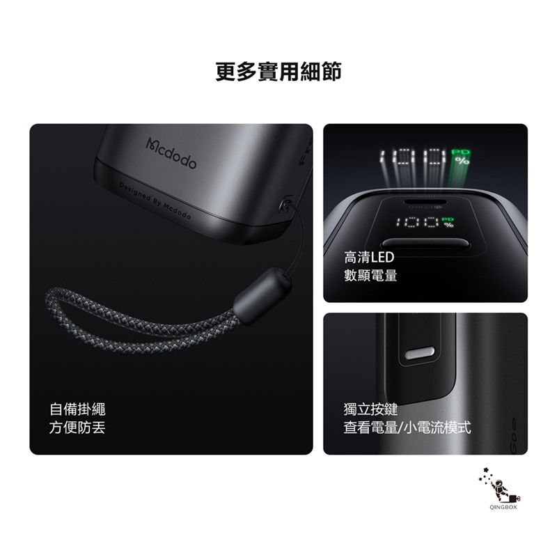 Mcdodo麥多多 LQ MC850 FreeGo系列3合1牆插款USB-C伸縮線數顯行動電源10000mAh 45W 37Wh