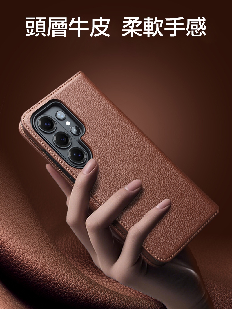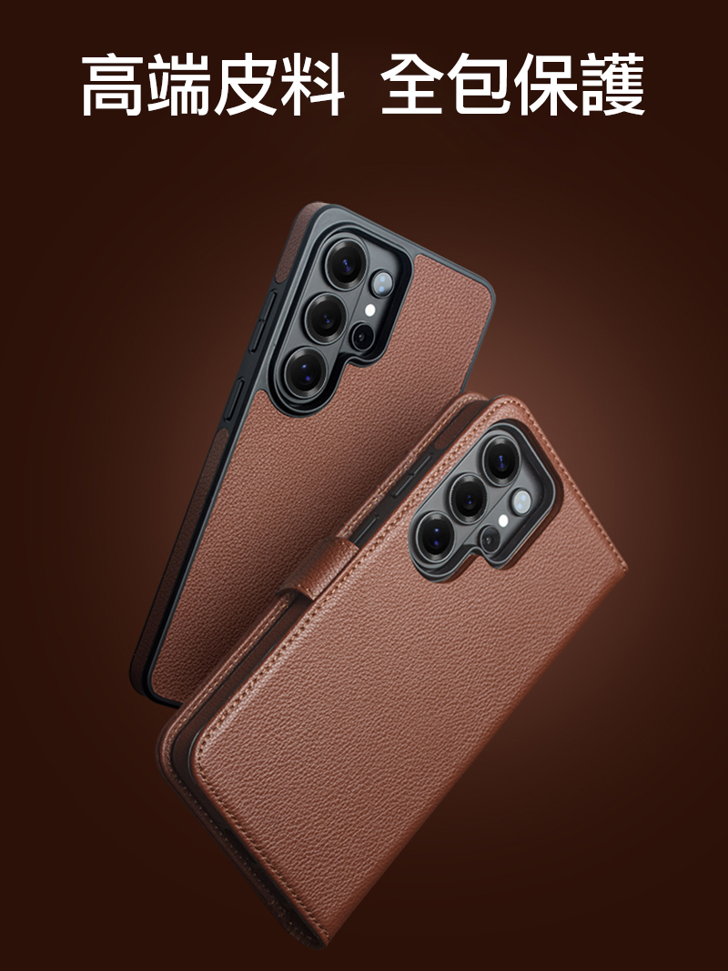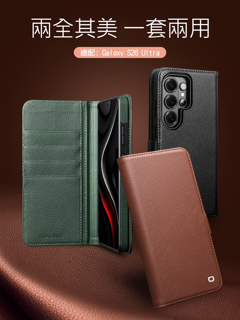 QIALINO SAMSUNG 三星 Galaxy S26 Ultra 5G 荔枝紋皮套(二合一)(棕色)