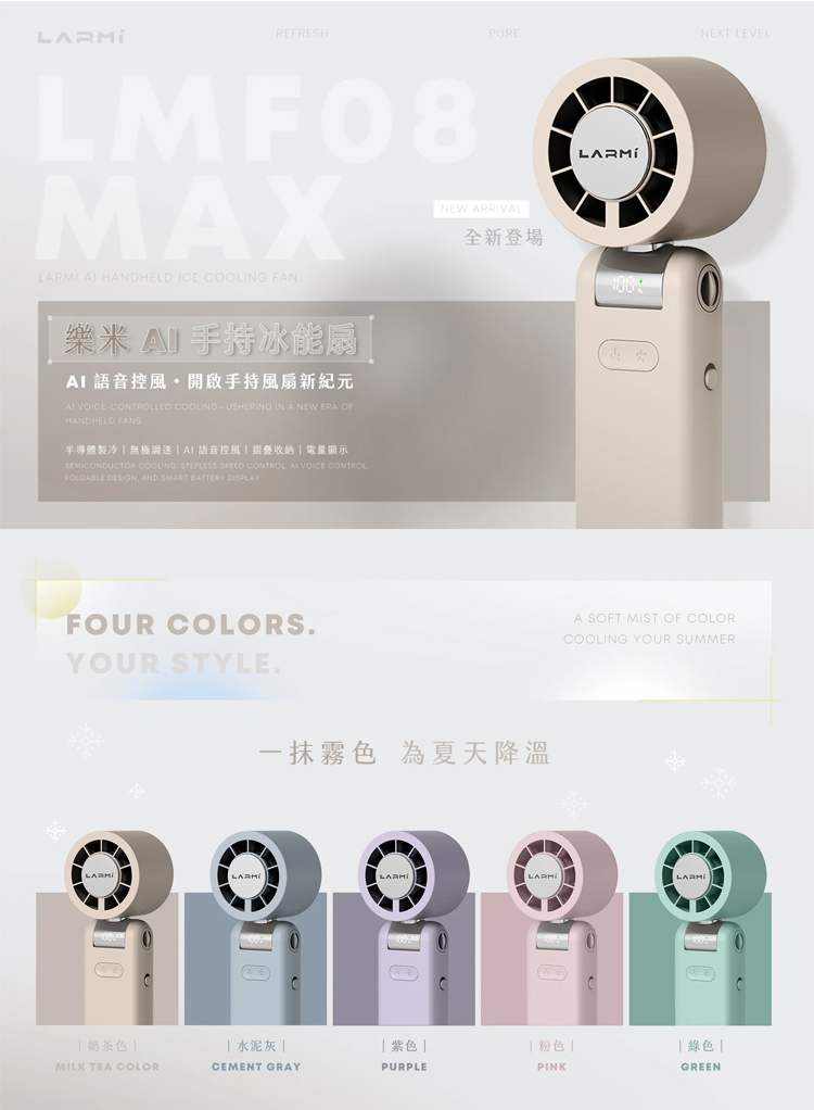樂米 LARMI AI升級款手持高速製冷風扇 LMF08 MAX
