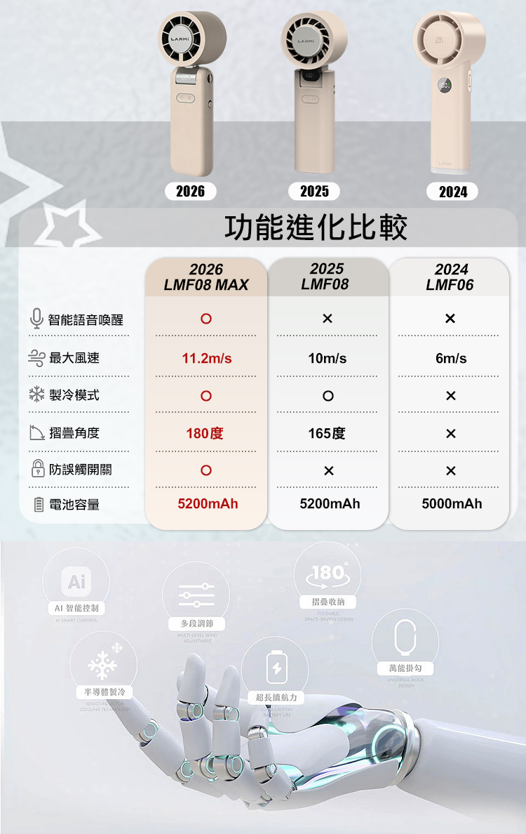 樂米 LARMI AI升級款手持高速製冷風扇 LMF08 MAX