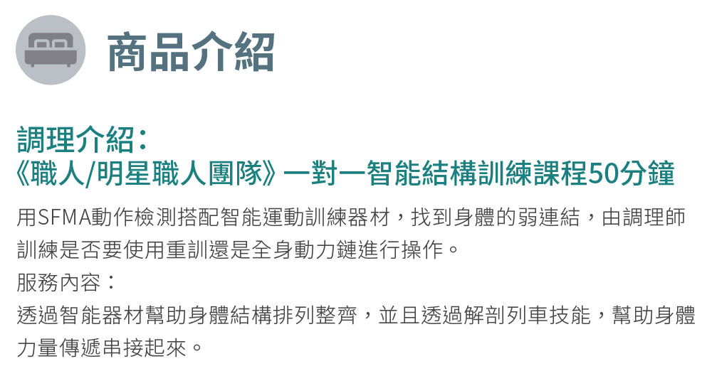 台北【FASCIA法夏‧筋膜結構美學】《職人/明星職人團隊》 一對一智能結構訓練課程50分鐘(MO)