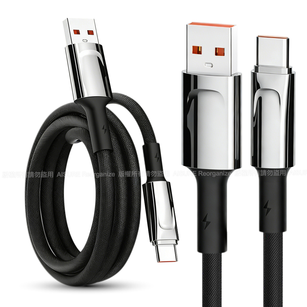 LDNIO 5mm加粗 USB-A to Type-C 鋁合金編織線-2米-黑色