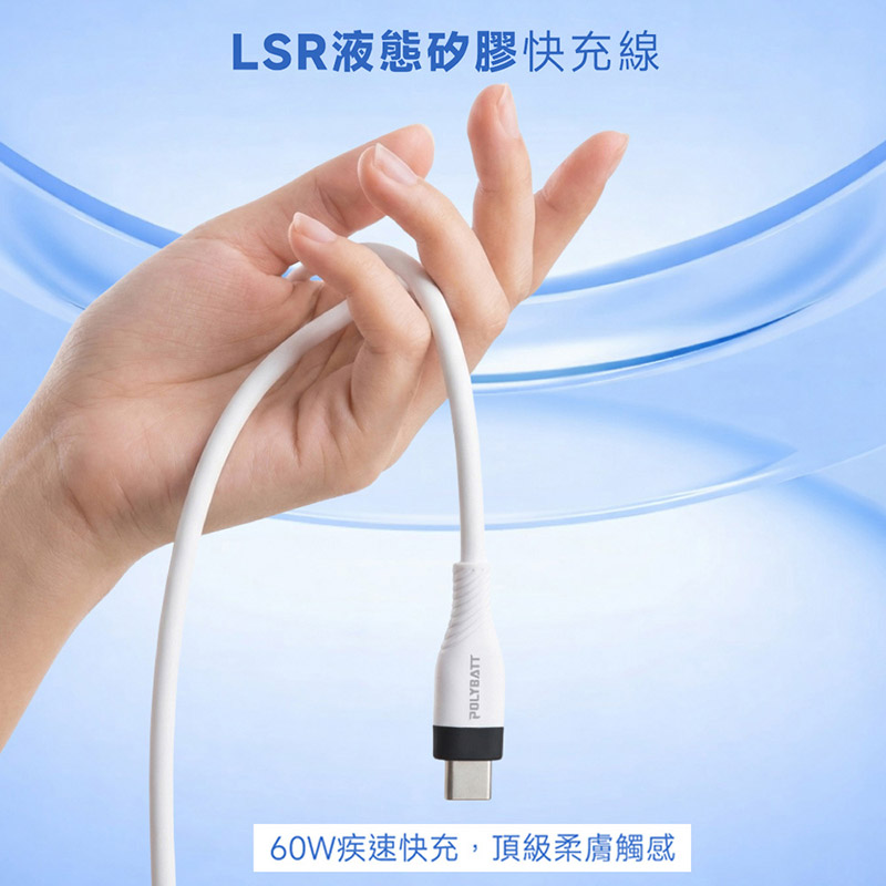 POLYBATT 雙頭Type-C 60W LSR液態矽膠快充線/傳輸線/充電線(150公分)