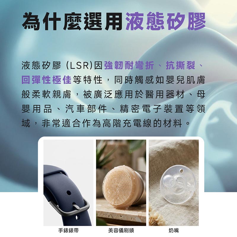◎ 採用LSR液態矽膠,3萬次抗彎曲測試