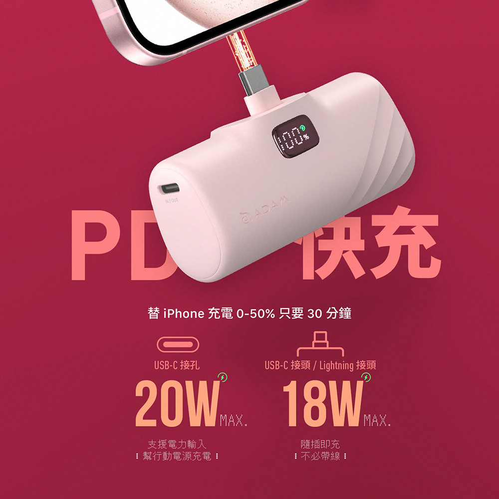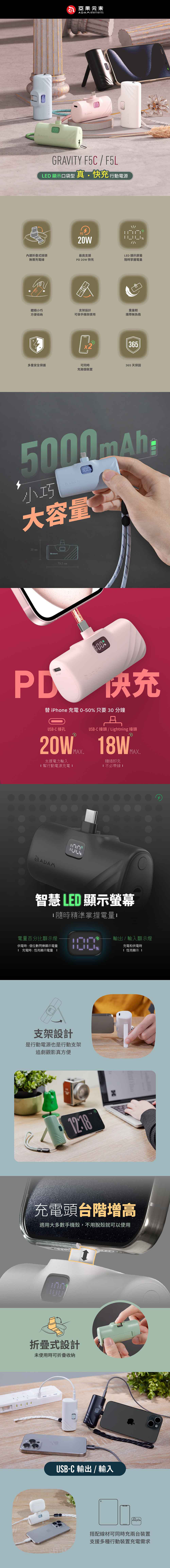 【亞果元素】GRAVITY F5L Lightning LED 顯示口袋型行動電源(有標示Wh)-白色