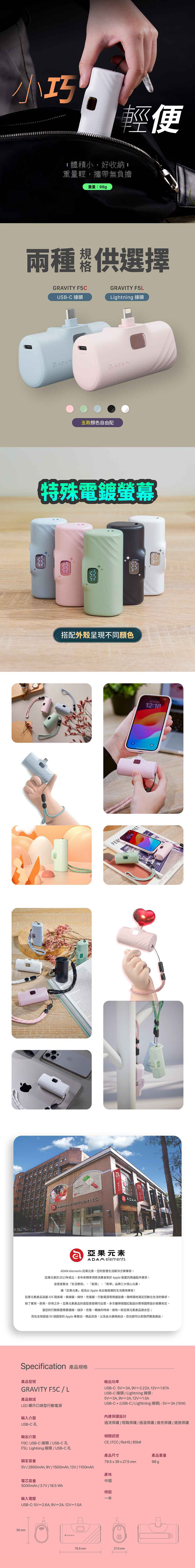 【亞果元素】GRAVITY F5L Lightning LED 顯示口袋型行動電源(有標示Wh)-黑色