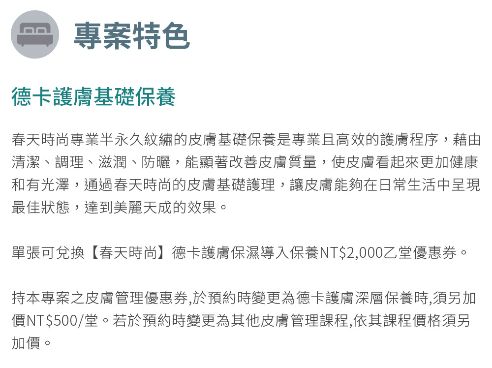 台北大安區【春天時尚】德卡護膚保濕導入保養NT$2,000乙堂優惠券