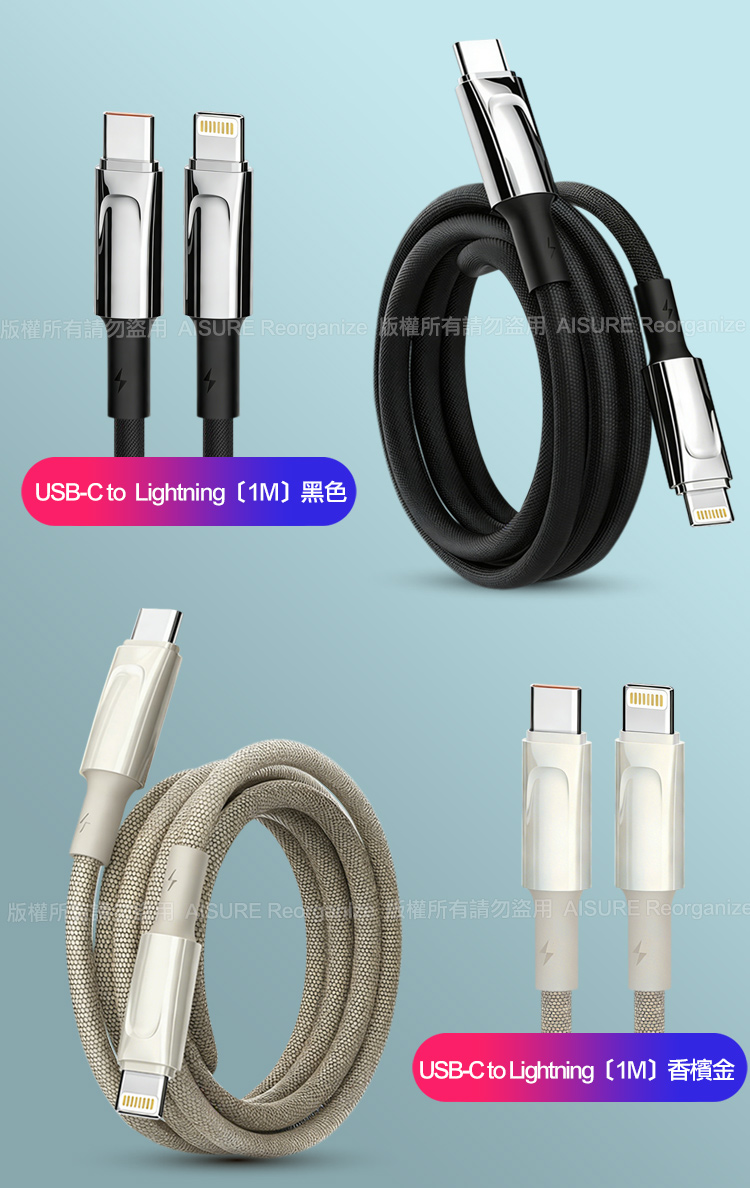 LDNIO 5mm加粗 Type-C to Lightning 鋁合金編織線-1米