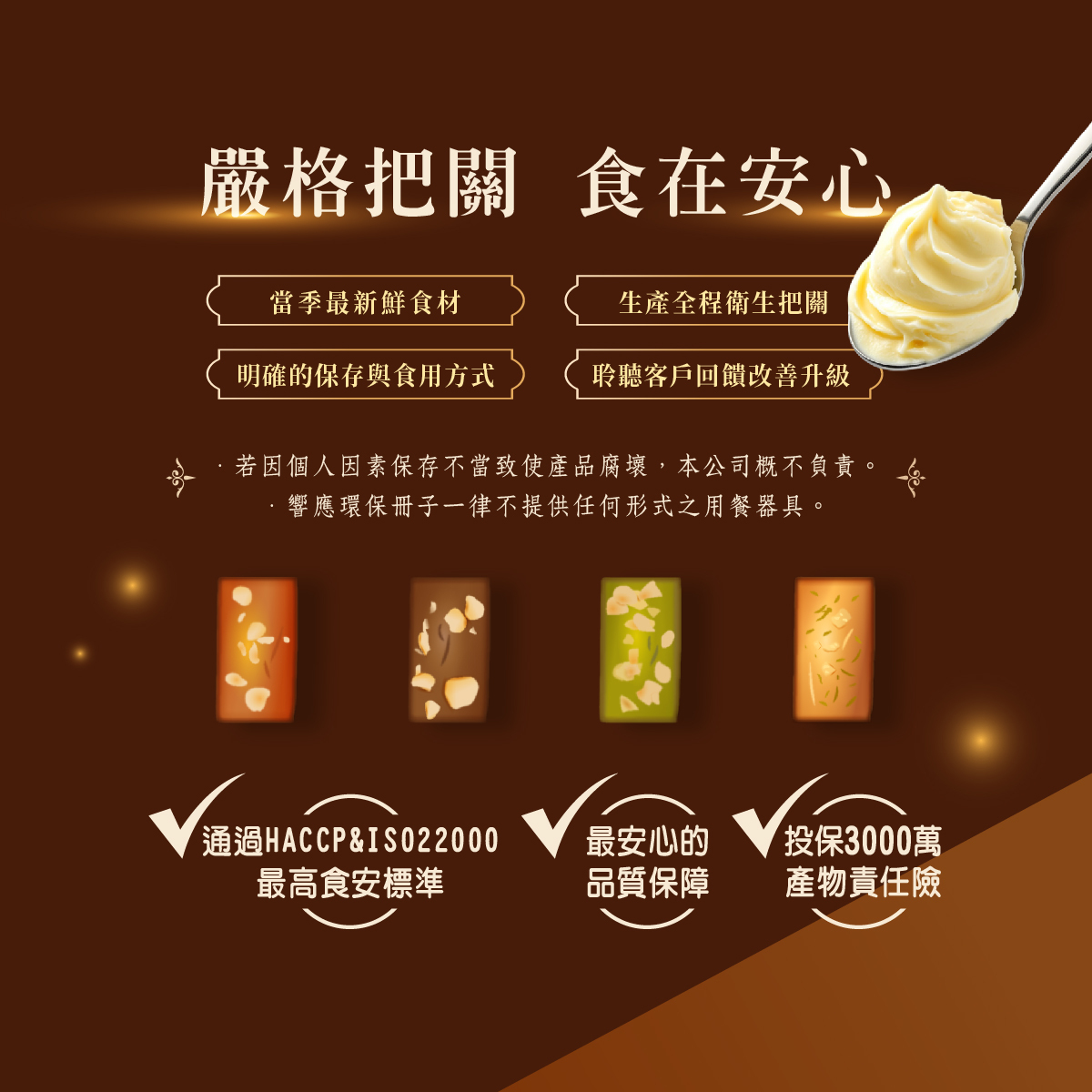 食品或生鮮蔬菜水果類、乳製品類、冷凍冷藏食材類…等,均符合「通訊交易解除權合理例外情事適用準則」第二條第一項(易於腐敗、保存期限較短或解約時即將逾期之商品),不再適用消費者保護法(以下簡稱消保法)第19條規定之7日解除權。除商品本身瑕疵或運送過程而造成的損毀,才可接受您的退貨申請。