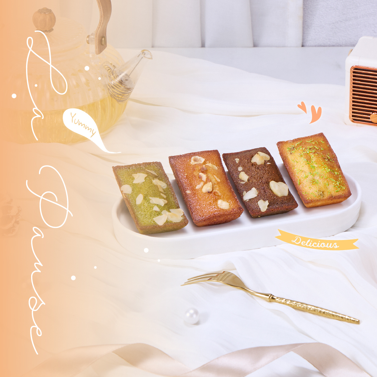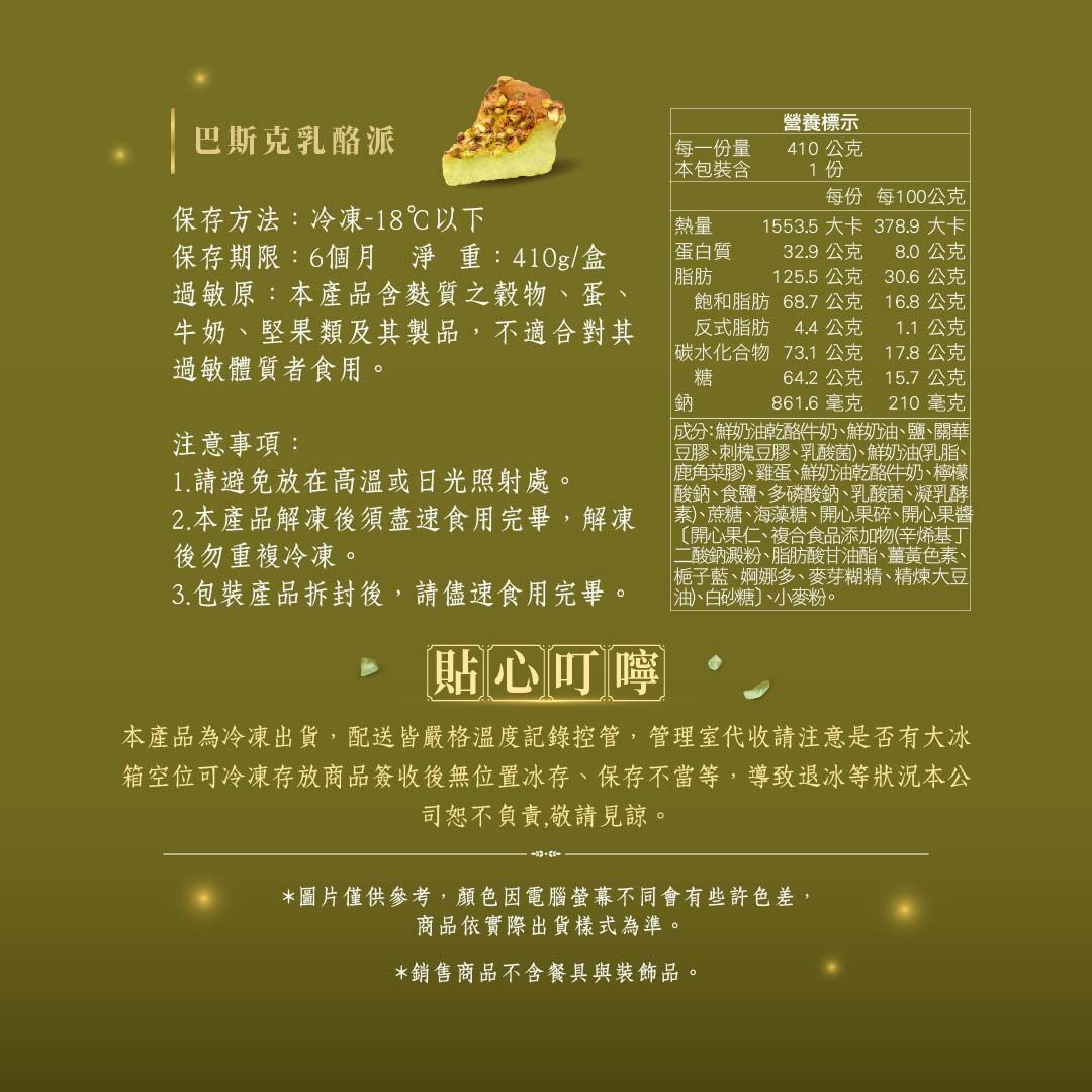 【DOZO嚴選】冊子-開心果巴斯克乳酪蛋糕*1入+(A)磅蛋糕四重奏(4種口味各一入)+(B)費南雪四重奏(4種口味各一入)