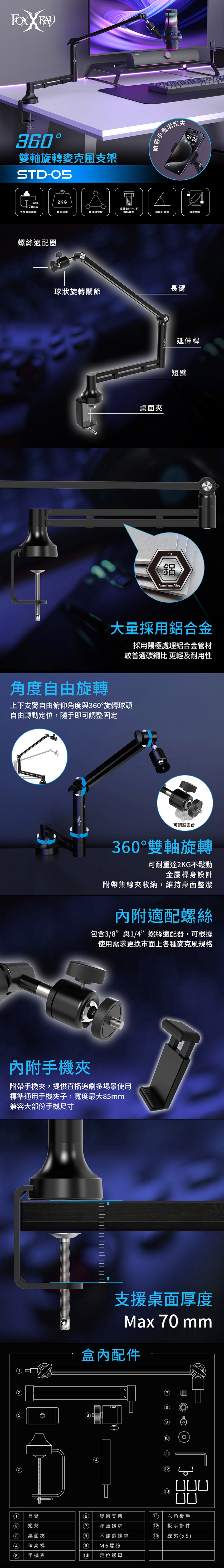 FOXXRAY 狐鐳 360°雙軸旋轉麥克風支架(FXR-STD-05)