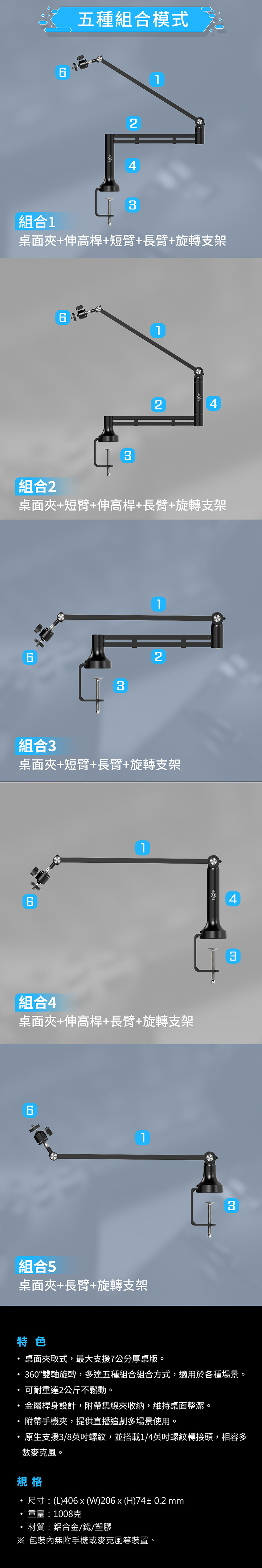 ★360°雙軸旋轉,多達五種組合組合方式,適用於各種場景。