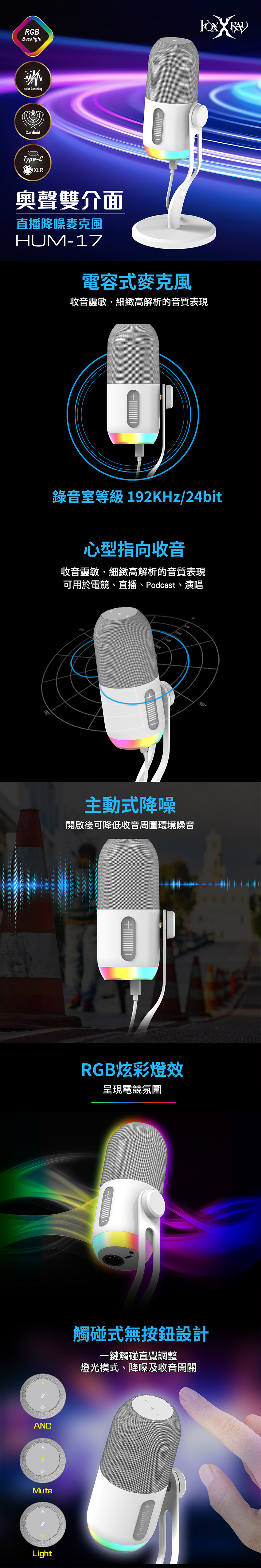 FOXXRAY 狐鐳 奧聲雙介面直播降噪麥克風 FXR-HUM-17(USB、 XLR、支援懸臂支架安裝)