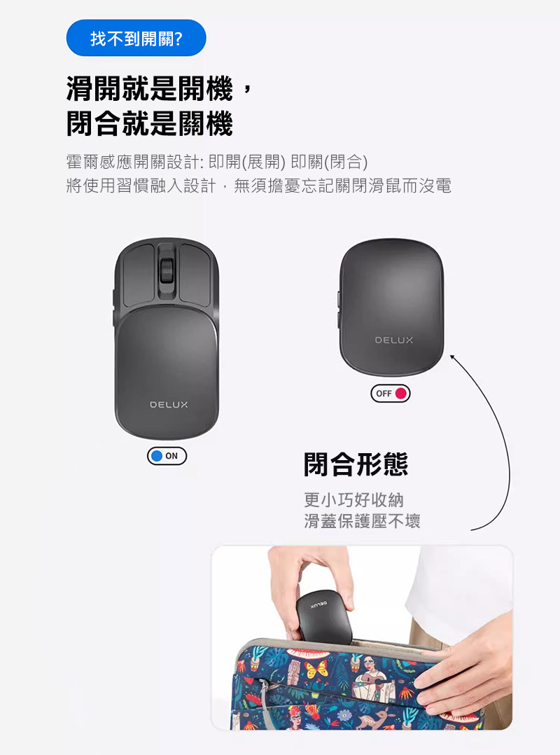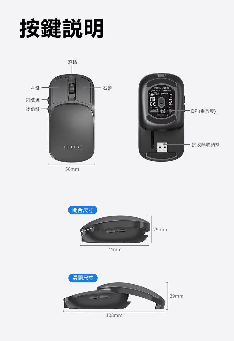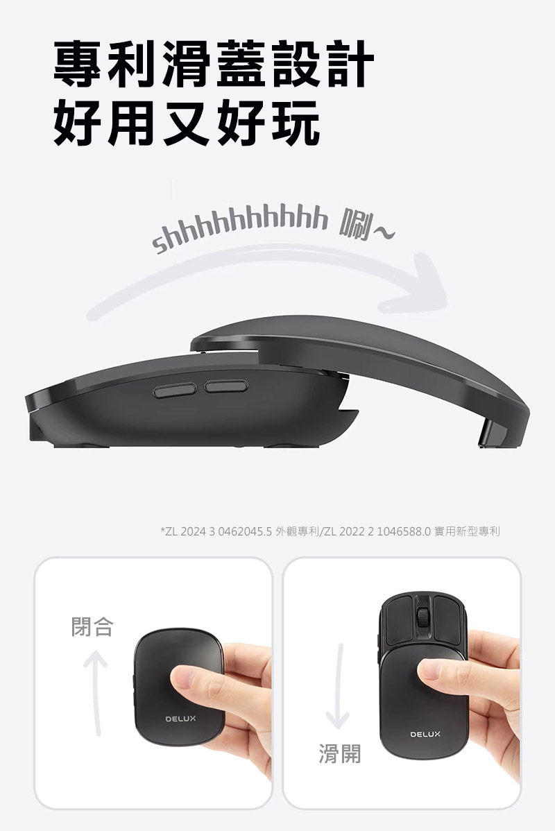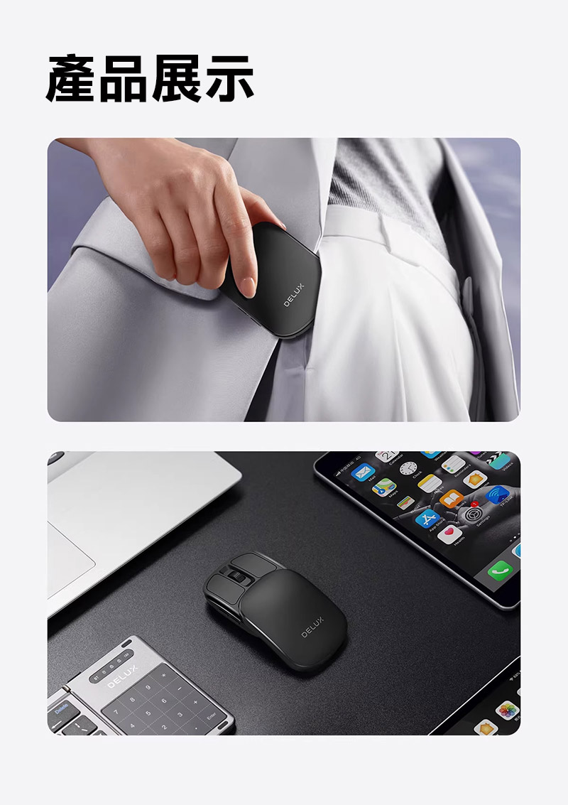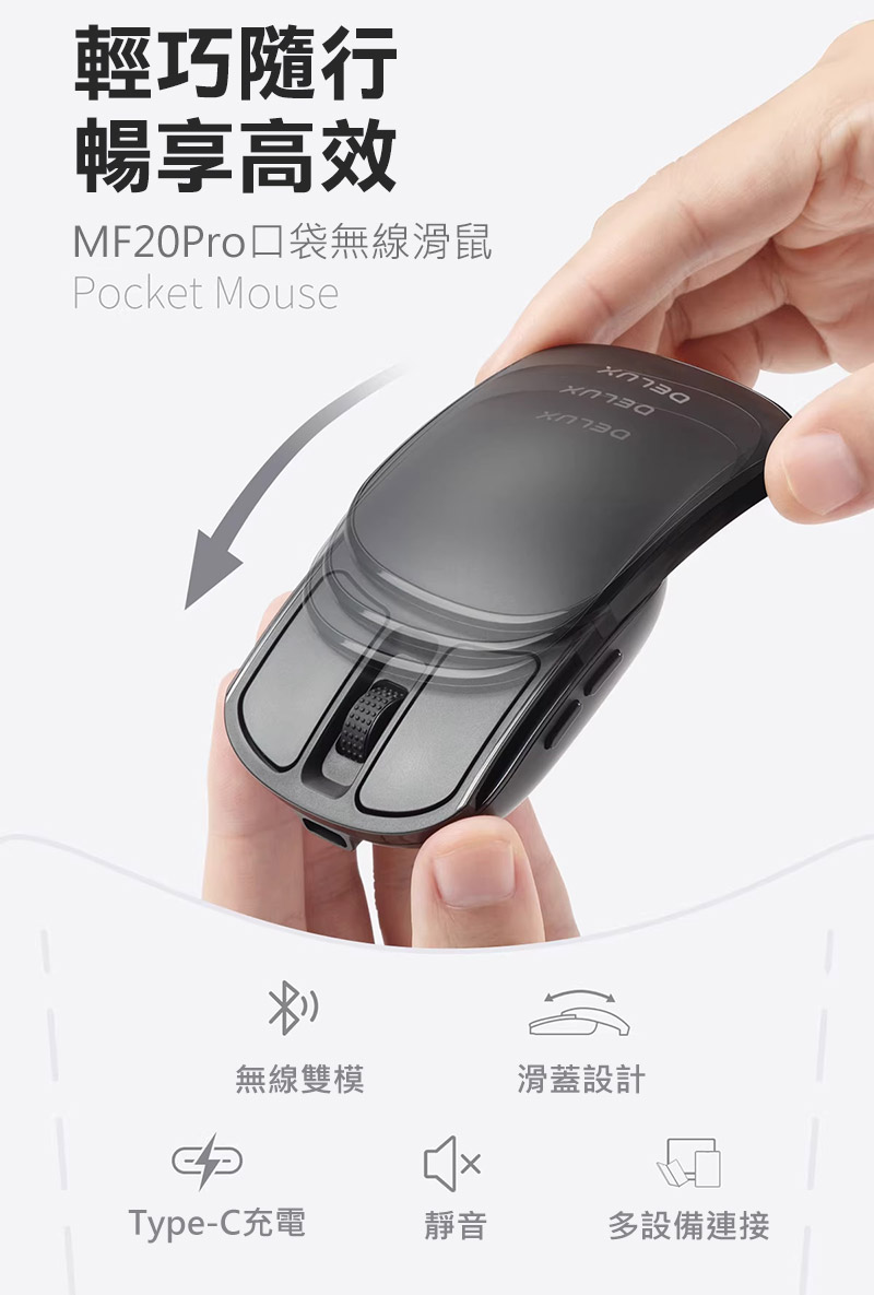 DeLUX MF20 Pro 光學滑鼠 口袋輕巧摺疊滑鼠(黑色)