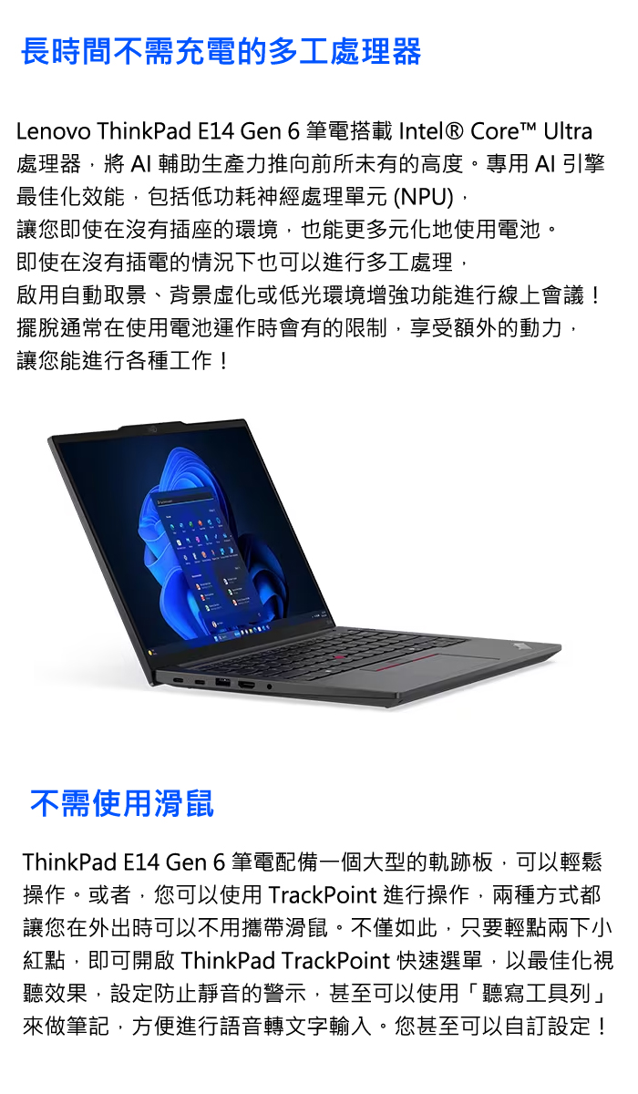 《Lenovo 聯想》 ThinkPad E14 Gen 6(14吋2.2K/Ultra 5 135U/16G/1TB SSD/Win11Pro/三年保)
