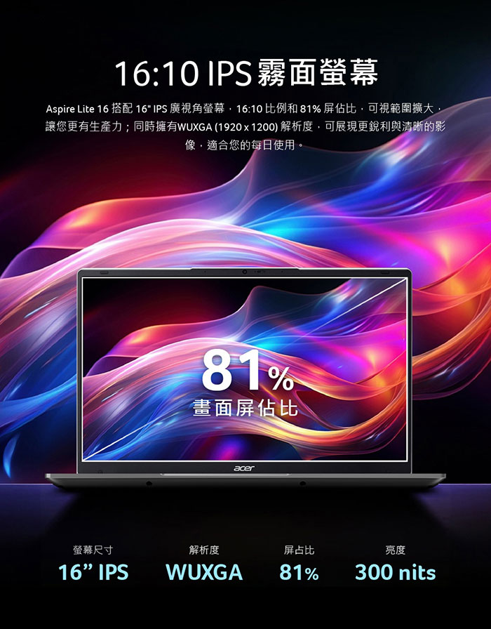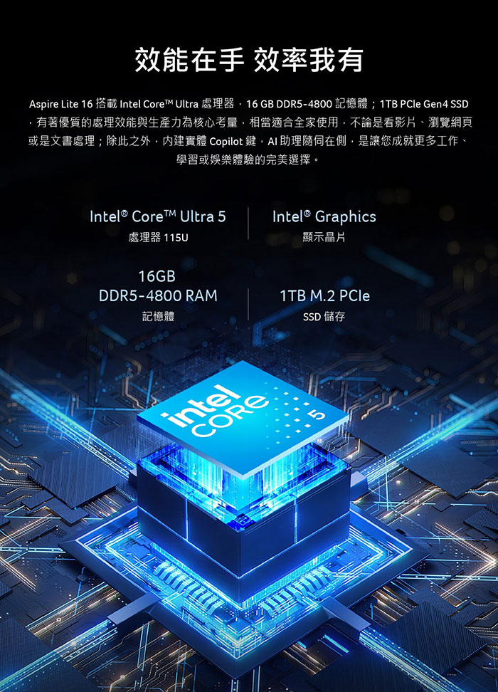 《Acer 宏碁》 AM16-53P-50SB(16吋WUXGA/Ultra 5 115U/16G+16G/512G SSD/Win11/兩年保/特仕版)