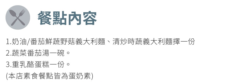 新北土城/桃園【YiPin Pasta義品料理義大利餐廳】單人素食超值套餐(MO)