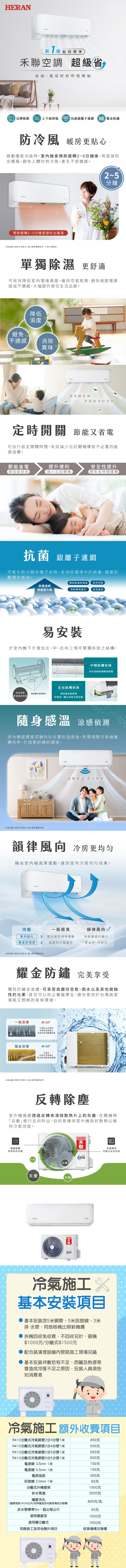 HERAN禾聯 HI-LA63H+HO-LA63H 9-11坪 耀金典雅變頻冷暖空調