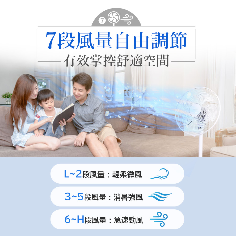 ◆7段風量設計,可依室溫高低隨心調節最舒適的風量。