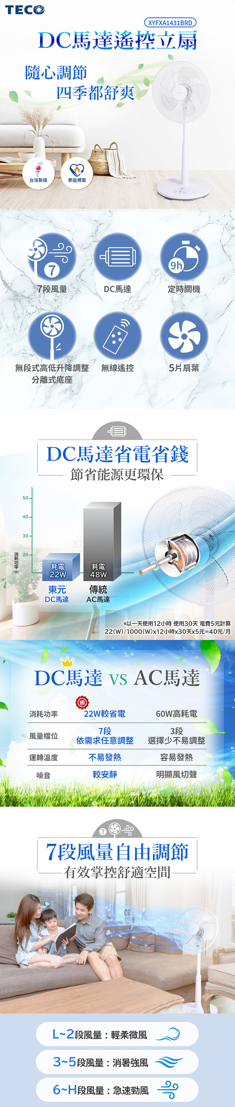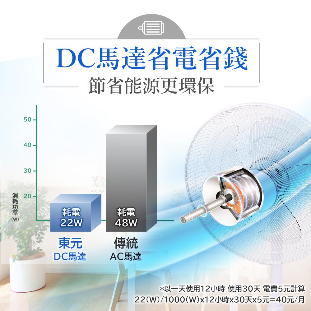 ◆DC馬達源自東元60年工藝技術,有效省電。