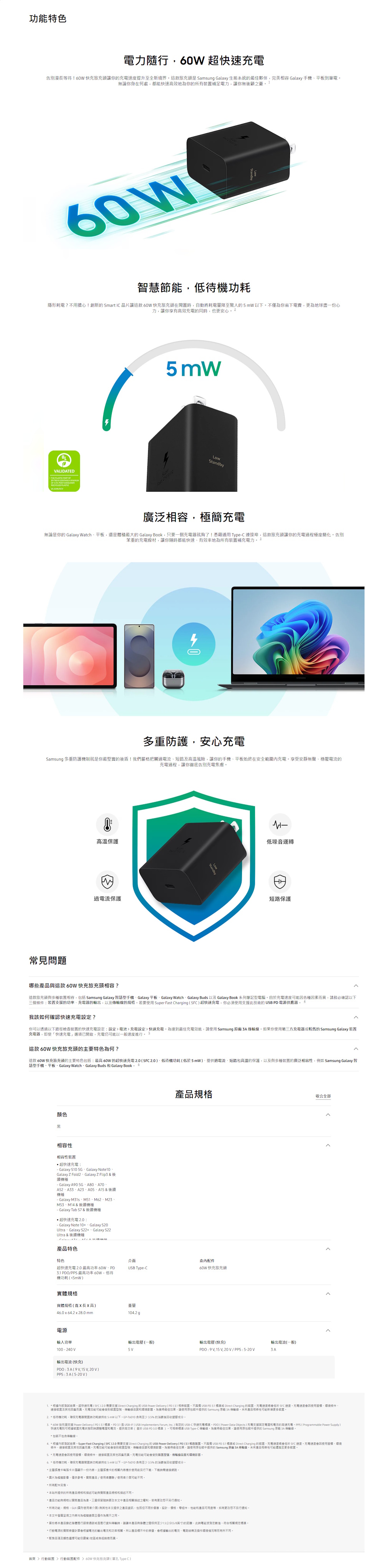 SAMSUNG 60W快充旅充頭(EP-T6010NBTGTW) 黑