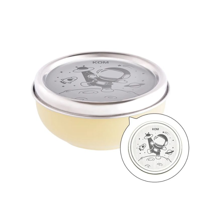 【DOZO嚴選】KOM-夢想系列丨316磨砂不鏽鋼 (幼兒園指定) 兒童碗_圖案 : 機器人/太空人/美人魚_三碗各一入 (附湯匙) 贈:太空人餐袋